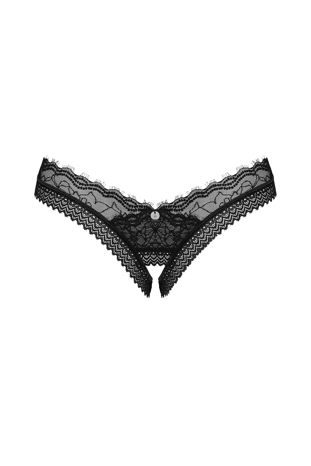 Masz ochotę założyć bieliznę stworzoną w duchu minimalizmu, która zaskoczy Cię oryginalnością i zagwarantuje niezapomniane doznania? Przygotowaliśmy dla Ciebie coś idealnego! Czarne stringi Medilla z otwartym krokiem to propozycja dla kobiet lubiących przełamywać rutynę. Subtelnie dobrana koronka doda Ci wdzięku! Będzie stanowić delikatny dodatek zwracający uwagę na Twoją urodę. Daj się porwać kuszącemu designowi!