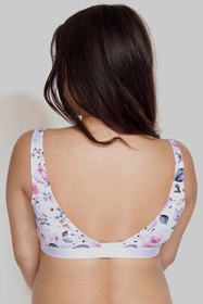 Multifunkcyjny biustonosz idealny zarówno na okres ciąży jak i okres karmienia. Miękki, bawełniany, bez fiszbin- idealnie dopasowuje się do kształtu zmieniających się piersi. Noszony w czasie ciąży daje poczucie komfortu w ostatnim okresie, kiedy wszystko już zaczyna uwierać. Noszony podczas laktacji umożliwia wygodne kamienie maluszka dzięki łatwo odchylającym się miseczkom. Idealny na pierwszy okres karmienia, do szpitala oraz do karmienia nocnego. Biustonosz zapinany z tyłu na haftki z trzystopniową regulacją co daje dodatkowy komfort indywidualnego dopasowania.