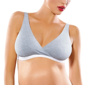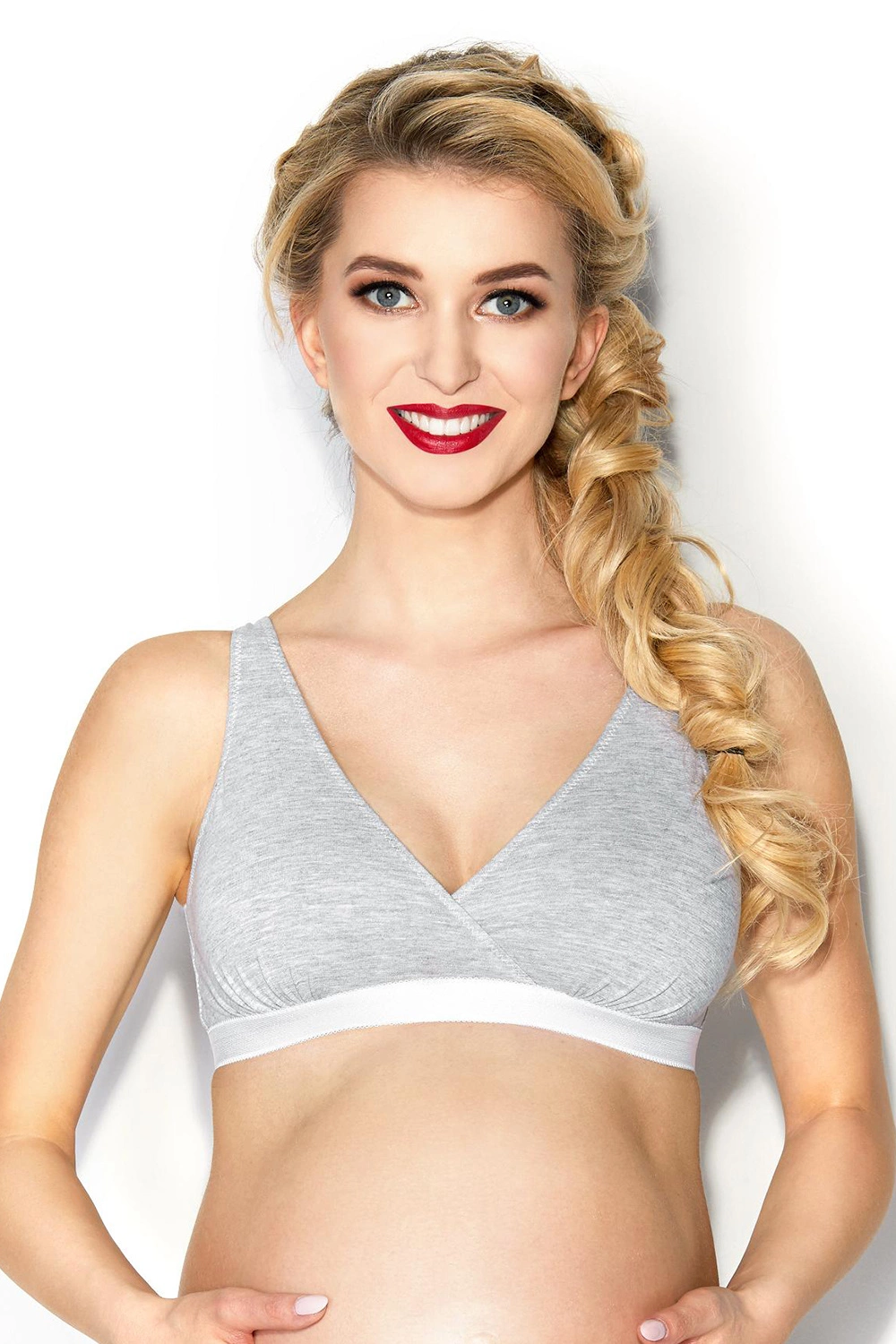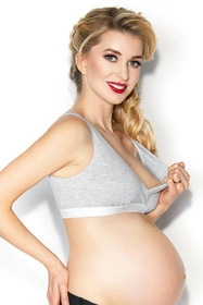 Multifunkcyjny biustonosz idealny zarówno na okres ciąży jak i okres karmienia. Miękki, bawełniany, bez fiszbin- idealnie dopasowuje się do kształtu zmieniających się piersi. Noszony w czasie ciąży daje poczucie komfortu w ostatnim okresie, kiedy wszystko już zaczyna uwierać. Noszony podczas laktacji umożliwia wygodne kamienie maluszka dzięki łatwo odchylającym się miseczkom. Idealny na pierwszy okres karmienia, do szpitala oraz do karmienia nocnego. Biustonosz zapinany z tyłu na haftki z trzystopniową regulacją co daje dodatkowy komfort indywidualnego dopasowania.