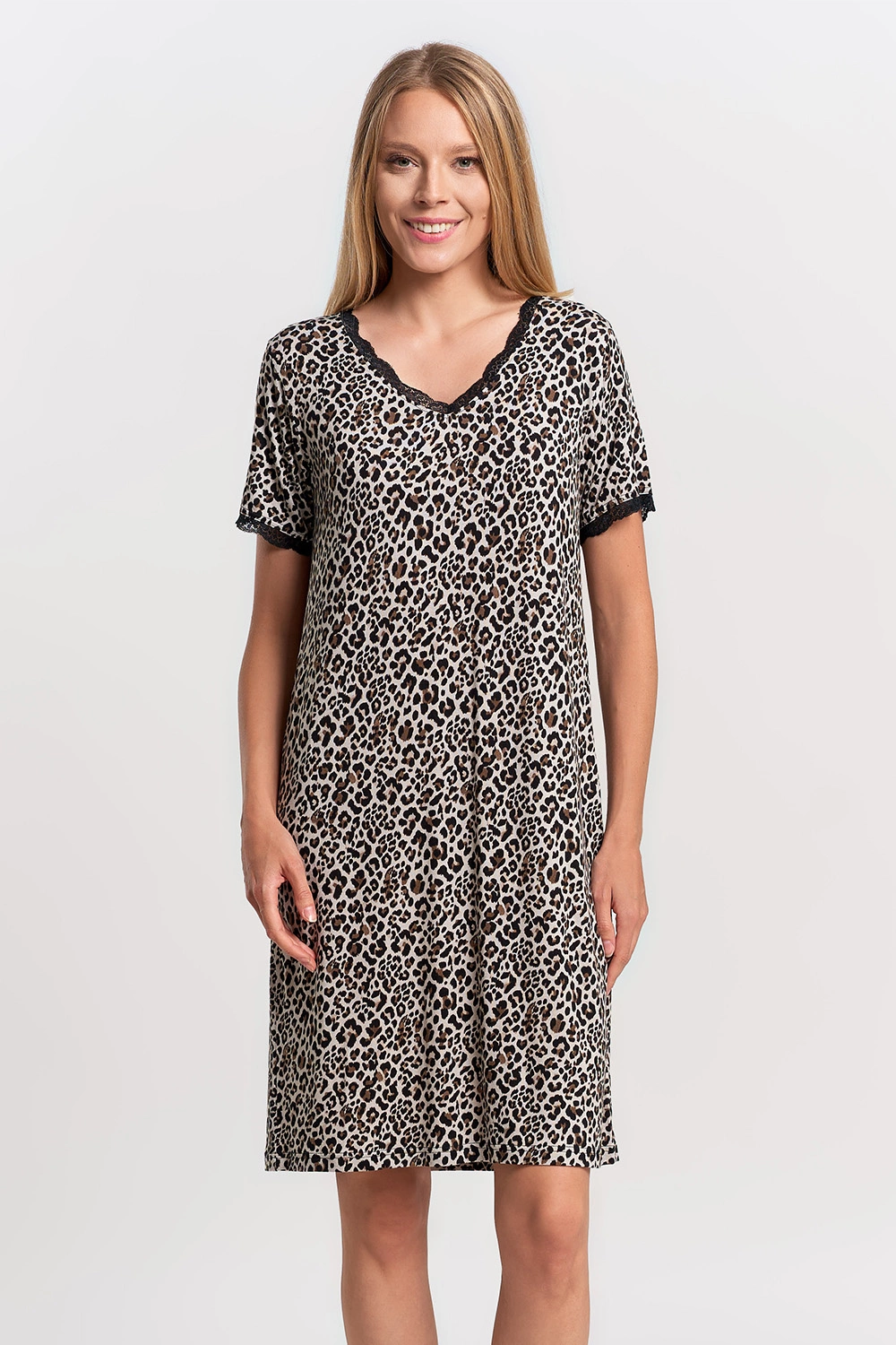 Lekka koszula nocna Moraj PDK2700-008 została uszyta z miękkiej wiskozy z dodatkiem elastanu, dzięki czemu jest przyjemna dla skóry i wygodnie układa się na sylwetce. Krótki rękaw i dekolt w serek sprzyjają swobodnej cyrkulacji powietrza i zapewniają komfort w cieplejsze noce. Krótka długość ułatwia ruchy i nadaje modelowi codziennej lekkości. Prosty, swobodny krój nie krępuje, a elastyczna dzianina pracuje z ciałem podczas snu. Wykończenie dekoltu jest staranne, subtelne i nie drażni skóry. Brak zapięć sprawia, że koszulę łatwo się zakłada i zdejmuje. To praktyczny wybór na codzienny wypoczynek, domowe poranki i wyjazdy, kiedy liczy się wygoda i oddychająca dzianina.