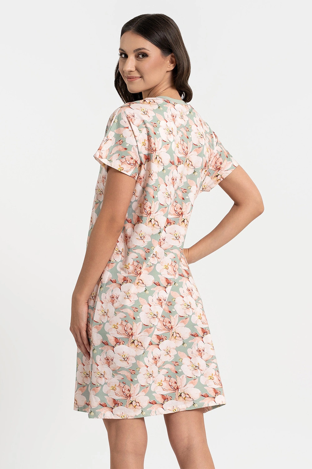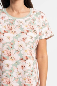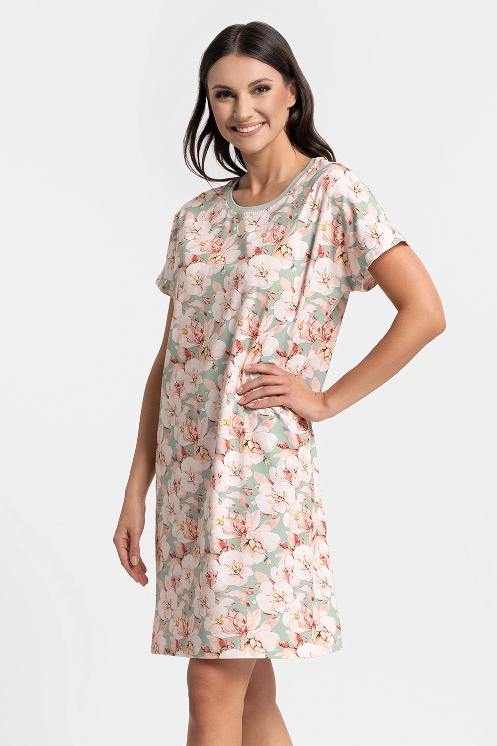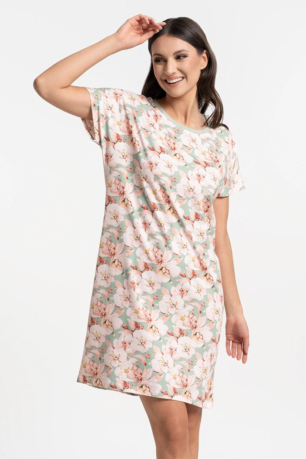 Damska koszula nocna Moraj PDK3200-011 łączy miękką, oddychającą dzianinę bawełnianą z elastycznością, która pracuje z ciałem. Klasyczny okrągły dekolt i krótki rękaw sprawiają, że to wygodna propozycja na cieplejsze noce i codzienne chwile relaksu w domu. Prosty, swobodny krój nie opina sylwetki i zapewnia komfort podczas snu. Dół wykończony na prosto, bez zbędnych dodatków, dla czystej, uniwersalnej estetyki. Brak zapięć ułatwia zakładanie i zwiększa wygodę użytkowania. Gładka w dotyku dzianina jest przyjemna dla skóry i zapewnia dobrą cyrkulację powietrza. Model sprawdzi się jako lekka koszulka do spania i komfortowa baza domowa przez cały rok.