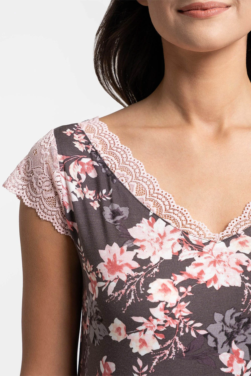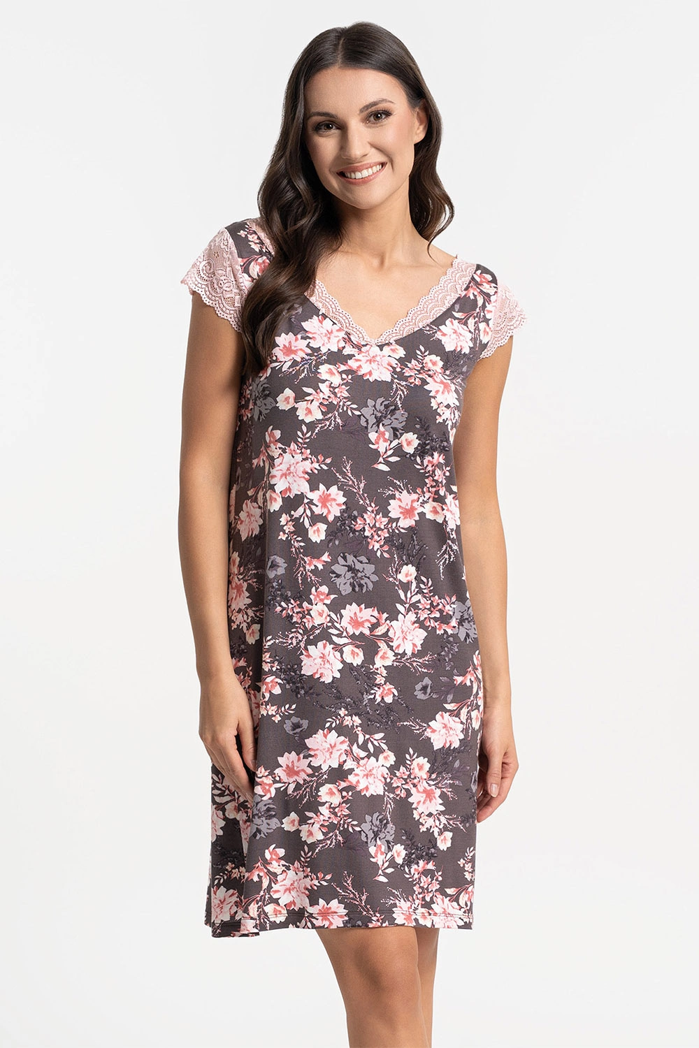 Lekka koszula nocna Moraj łączy miękką dzianinę wiskozową z elastycznym wykończeniem, dzięki czemu przyjemnie układa się na sylwetce i nie krępuje ruchów. Dekolt w serek subtelnie wydłuża szyję i dodaje całości delikatności. Krótki rękaw sprawdzi się o każdej porze roku, szczególnie w cieplejsze noce lub pod szlafrok. Fason jest prosty i swobodny, co zapewnia komfort podczas snu i domowego wypoczynku. Brak zapięć ułatwia zakładanie, a gładka, miękka w dotyku dzianina daje wrażenie lekkości. Staranne obszycia przy dekolcie i rękawach podnoszą trwałość produktu. To praktyczny wybór na co dzień: oddychający, elastyczny i wygodny w noszeniu, odpowiedni dla różnych typów sylwetki i preferencji. Sprawdzi się jako samodzielna baza nocna lub w komplecie ze szlafrokiem.