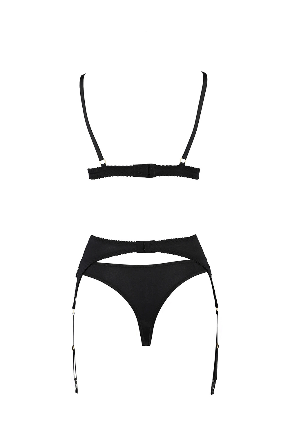 - komplet składa się z biustonosza, pasa do pończoch oraz stringów