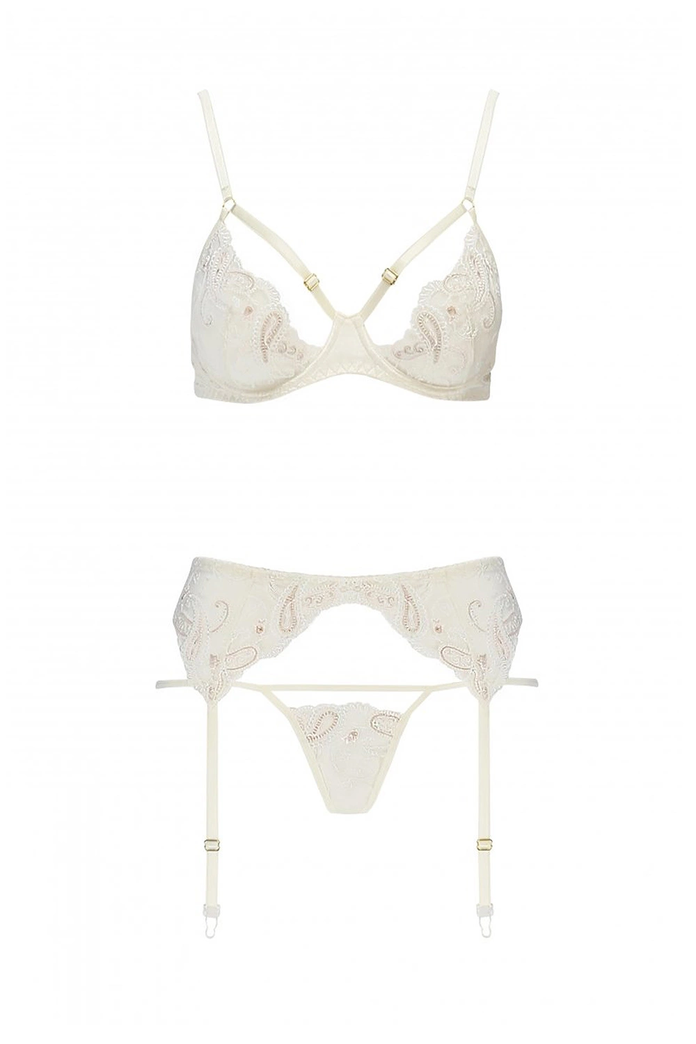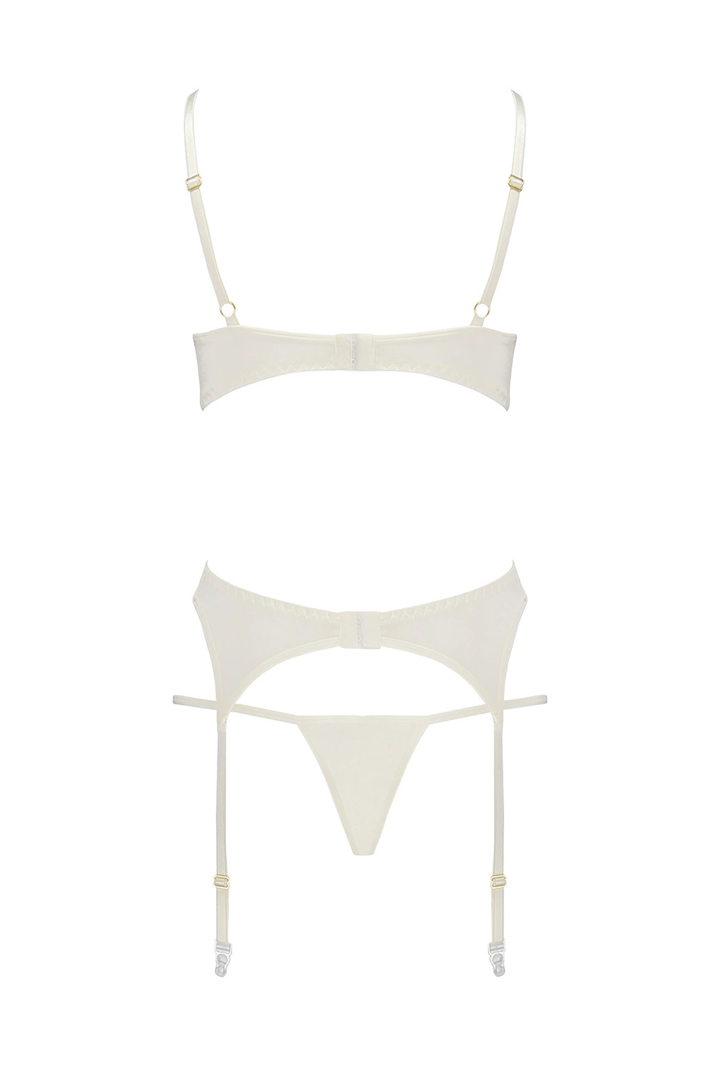 - komplet składa się z biustonosza, stringów oraz pasa do pończoch