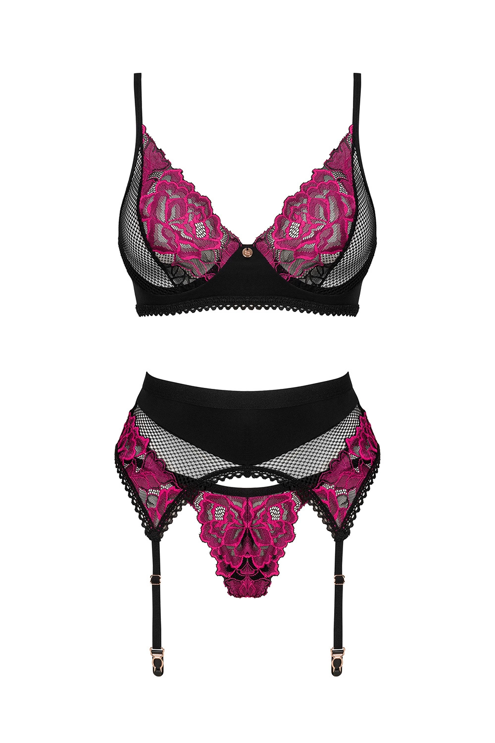 - trzyczęściowy komplet Rosenty – zawiera biustonosz, pas do pończoch i stringi