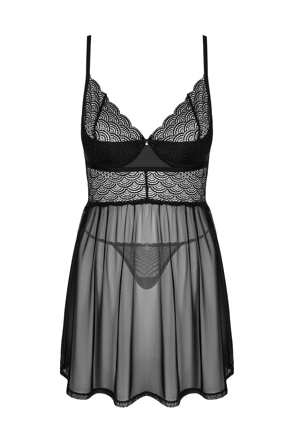 • Nocna komplet koszulka + stringi Obsessive Chemeris babydoll czarny