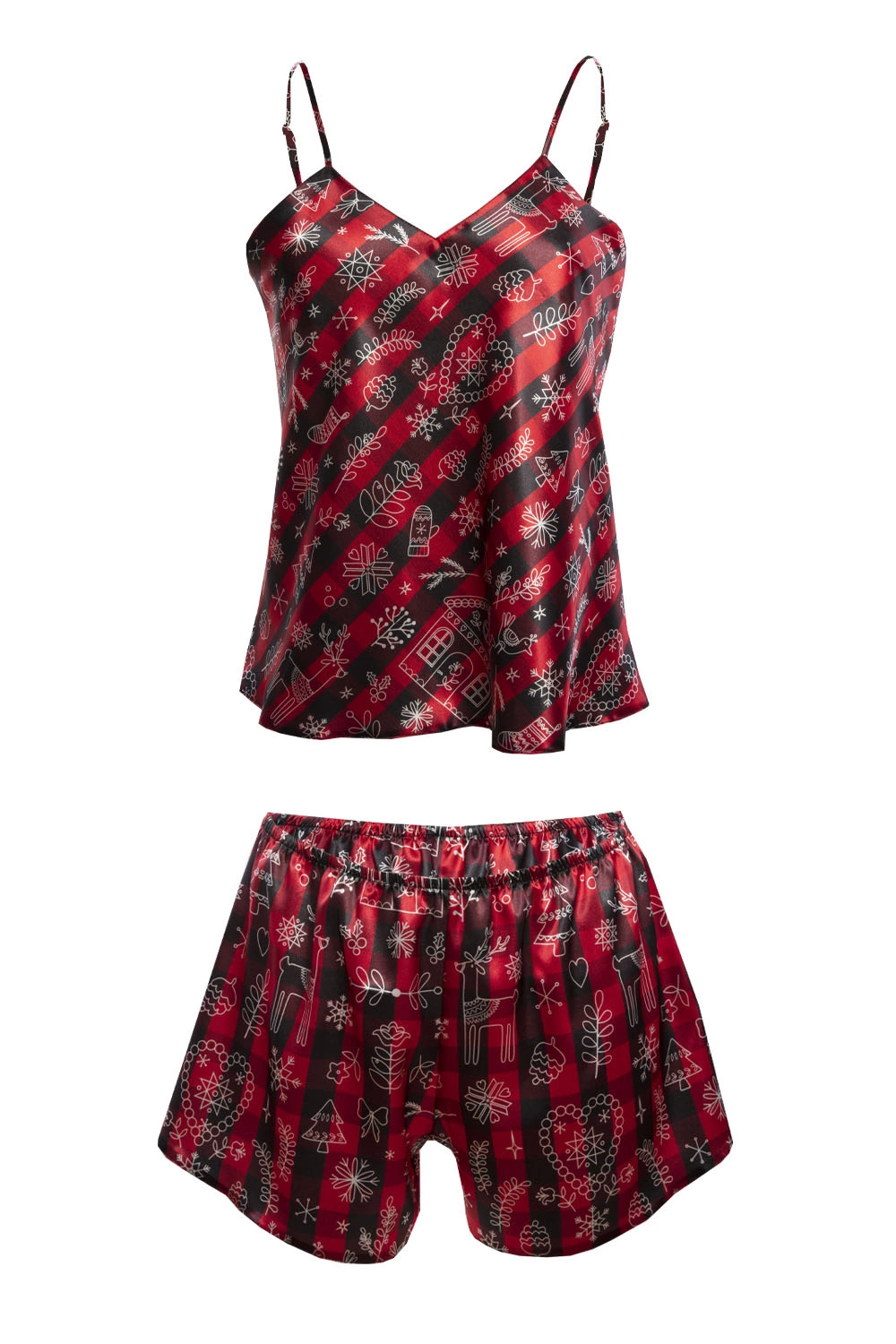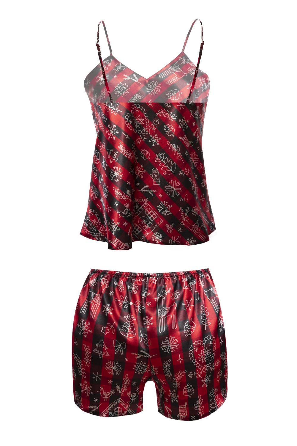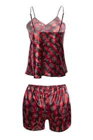 Nocna komplet top + szorty Dkaren DK-KK-012 czerwono-czarny