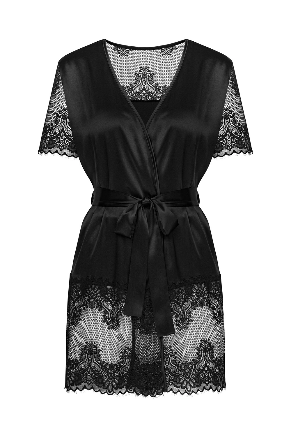 - czarny, satynowy peniuar