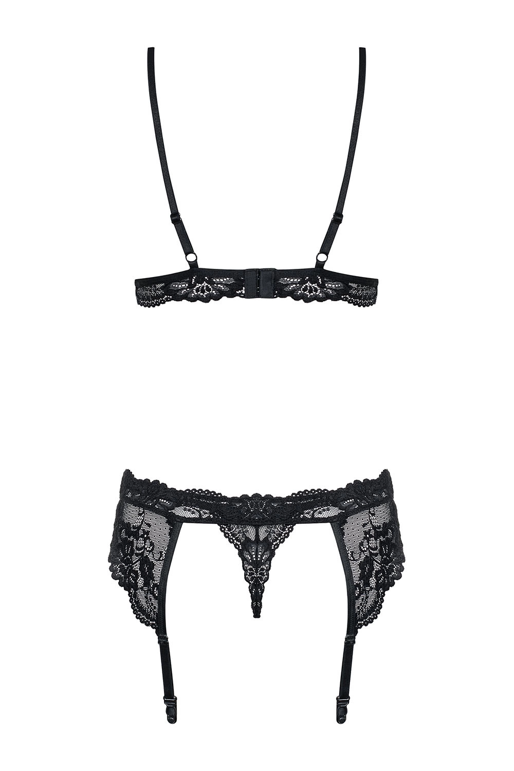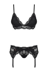 - uwodzicielski, czarny komplet z pasem do pończoch