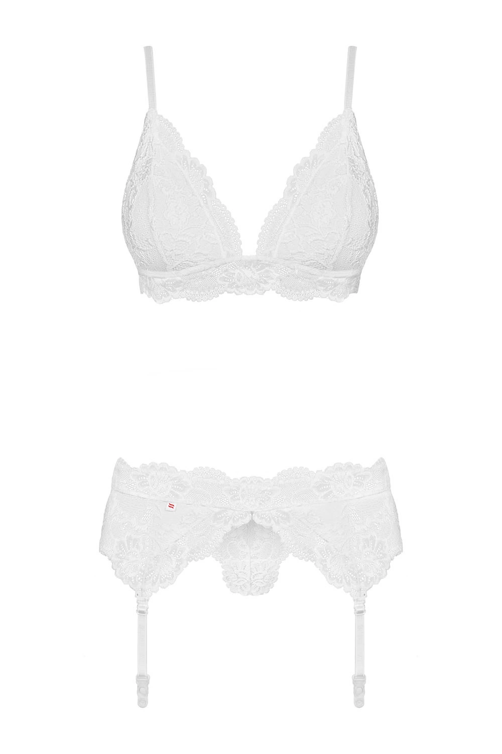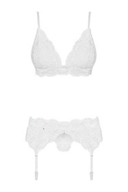 - uwodzicielski, biały komplet z pasem do pończoch