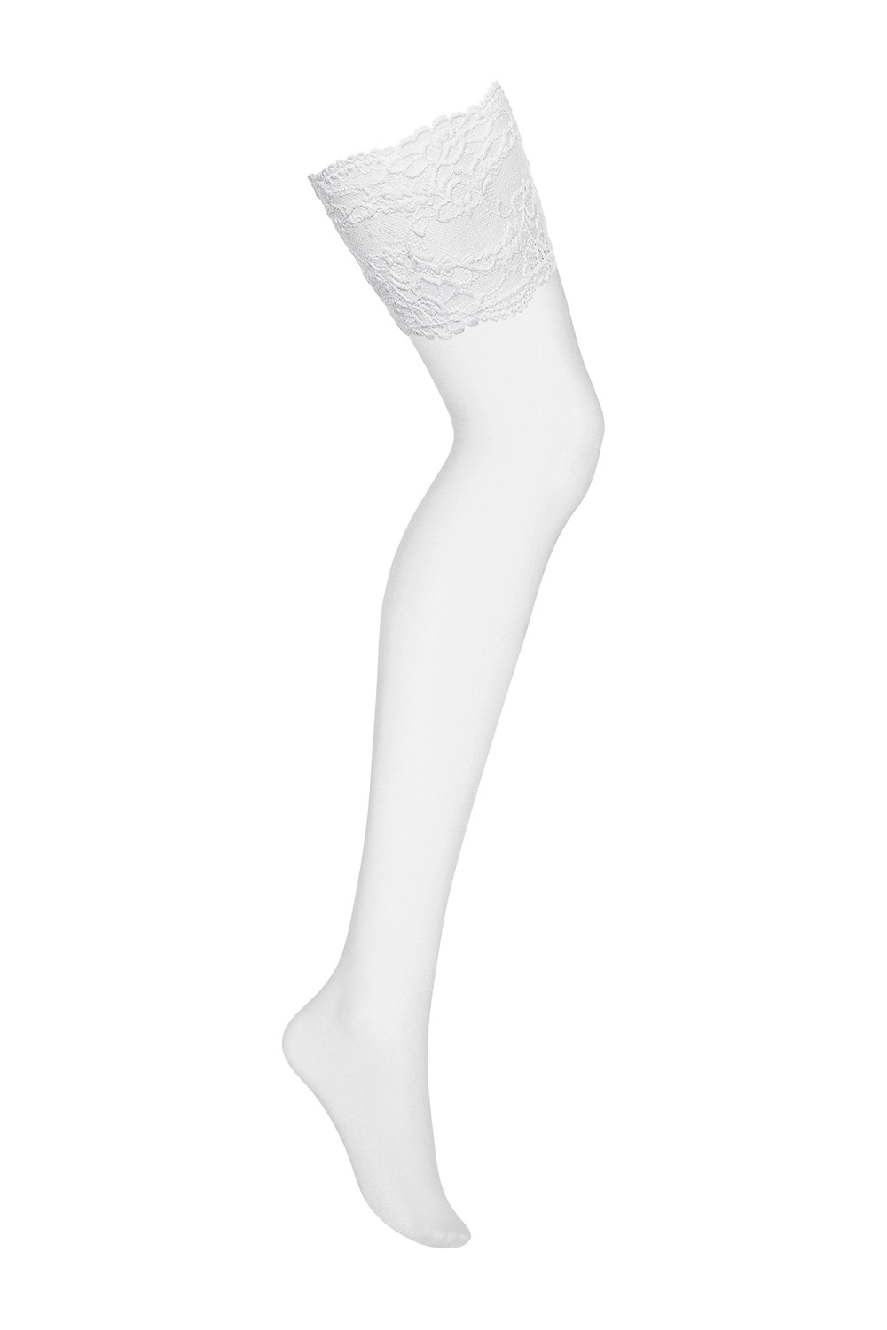 - białe pończochy z pięknym, koronkowym wykończeniem
