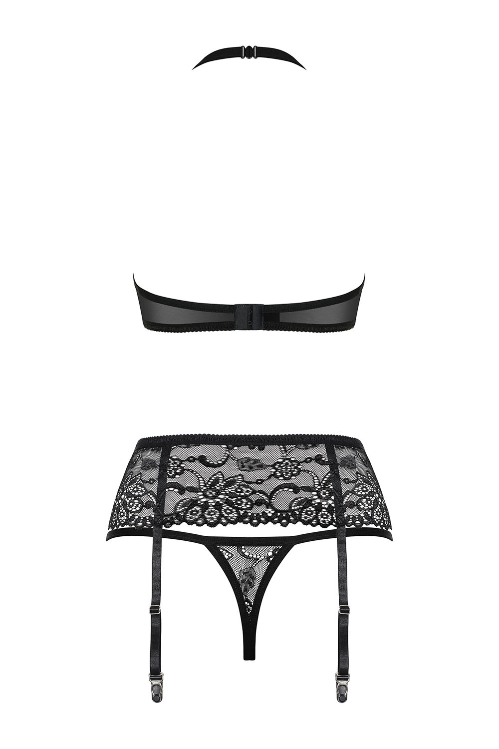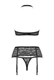 Obsessive 838-SEG-1 Nocna komplet biustonosz + stringi + pas do pończoch, czarny