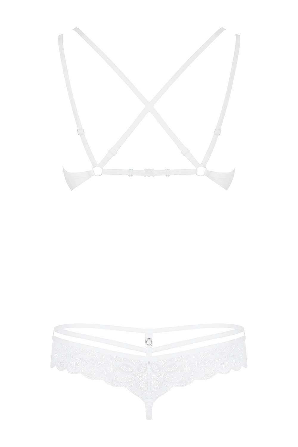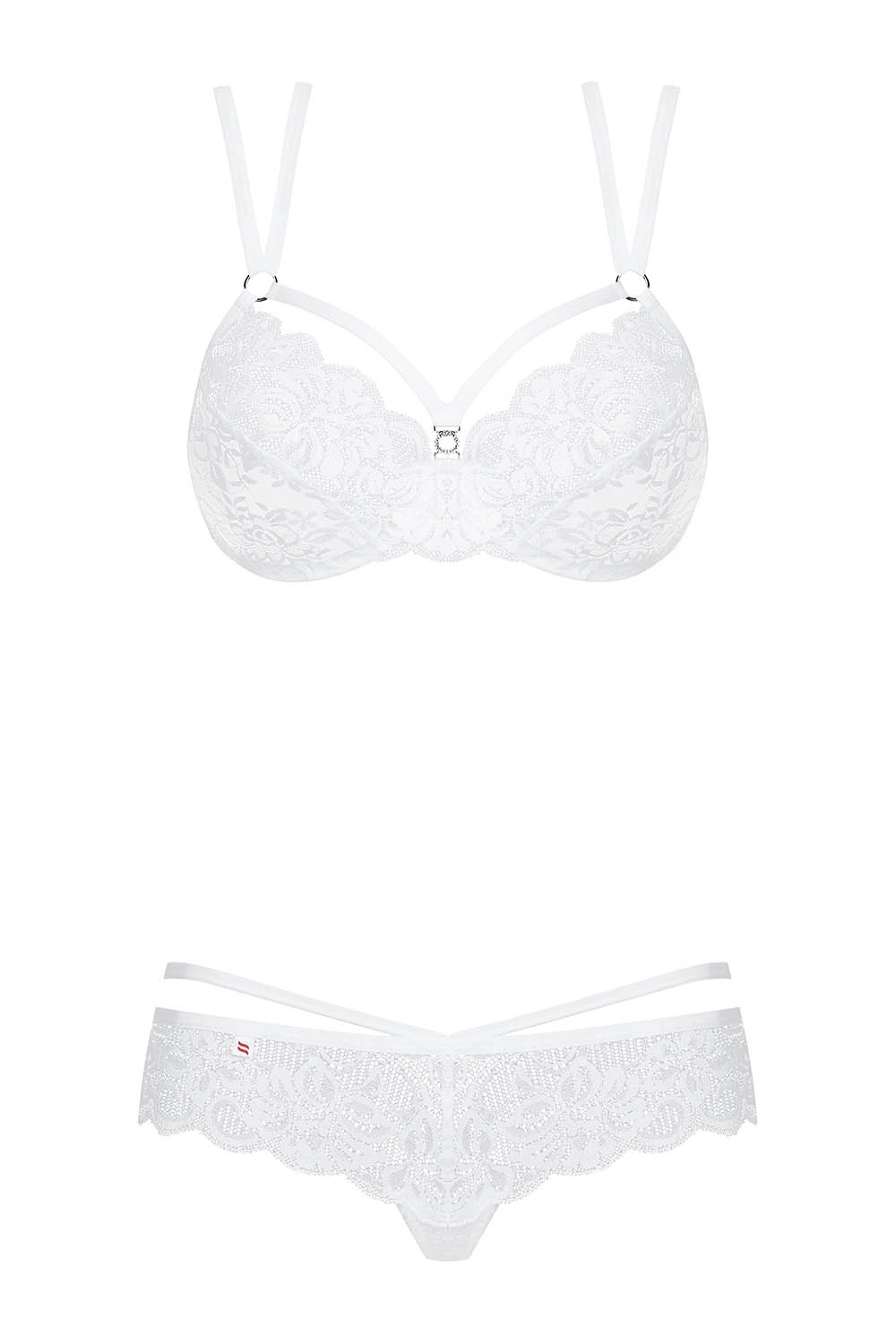 Spodobał Ci się ten model? Świetny wybór! Na żywo wygląda jeszcze cudowniej. Nieziemsko piękna biel, kusząca koronka i seksowne paski – zabierz do siebie ten wyjątkowy zestaw. A gdy już będzie Twój, przygotuj się na mnóstwo przyjemnych chwil z Twoim mężczyzną!