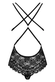 Body ma fiszbiny, dzięki temu super eksponuje i także podtrzymuje biust. Ozdobny element oraz paseczki przy biuście dodają bez wątpienia uroku. Przy nogach zakończone faliście. Jedyne czego mogłoby mi tu brakować to to, że nie jest rozpinane w kroku. Ale mimo to czuje się w nim bardzo kobieco, komfortów i seksowne. To jedno z moich ulubionych body, po które bardzo często sięgam.