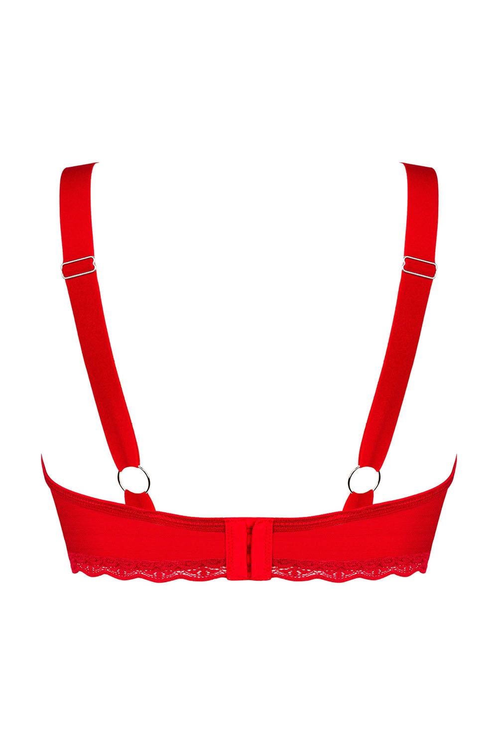 Seksowny biustonosz z kolekcji Belovya. Niesamowicie delikatna i miła w dotyku koronka zachwyca i pięknie podkreśla piersi, a biżuteryjny detal na biuście dodaje elegancji całości. Miseczki z fiszbinami idealnie eksponują i unoszą biust – nie tylko Ty nie będziesz mogła oderwać od siebie wzroku! Ten model sprawdza się fenomenalnie w parze z figami i podwiązkami z tej samej kolekcji.