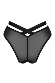 Figi Brasica to bardzo oryginalny krój w kształcie litery V połączony z prześwitującą siateczką i czarnym materiałem w paski. Ta propozycja zapewnia moc kokieterii i pewności siebie! Krzyżujące się na brzuchu i plecach paski przykuwają wzrok i pięknie podkreślają talię. Figi zestawione z biustonoszem z tej samej kolekcji będą idealną propozycją dla kobiet kochających elegancką i zmysłową bieliznę.
