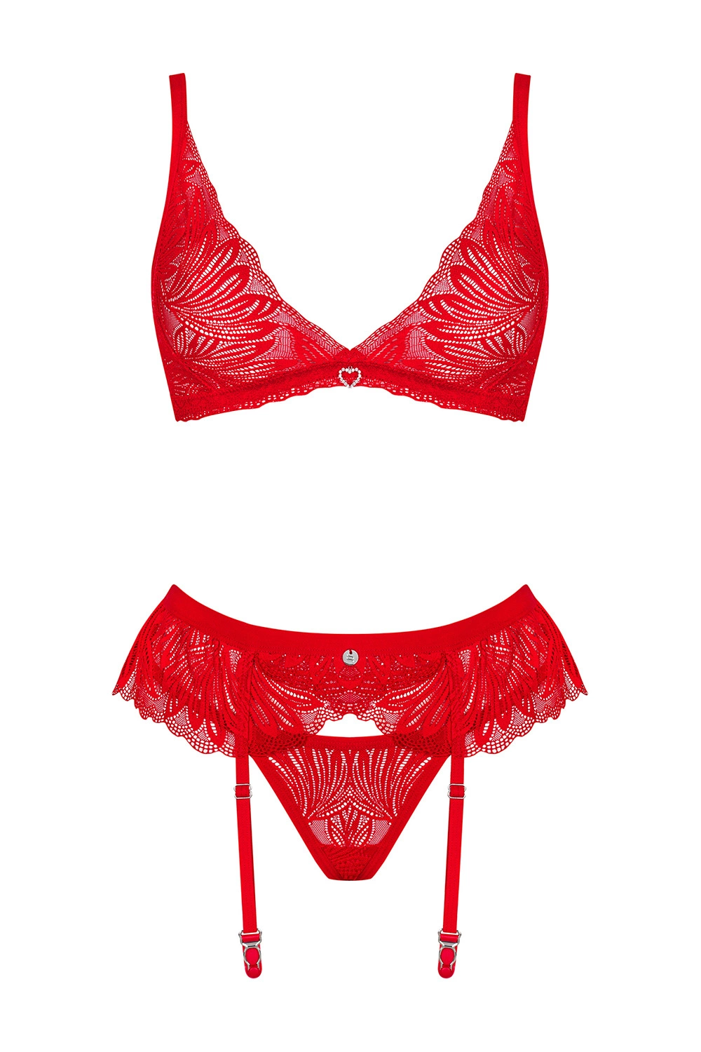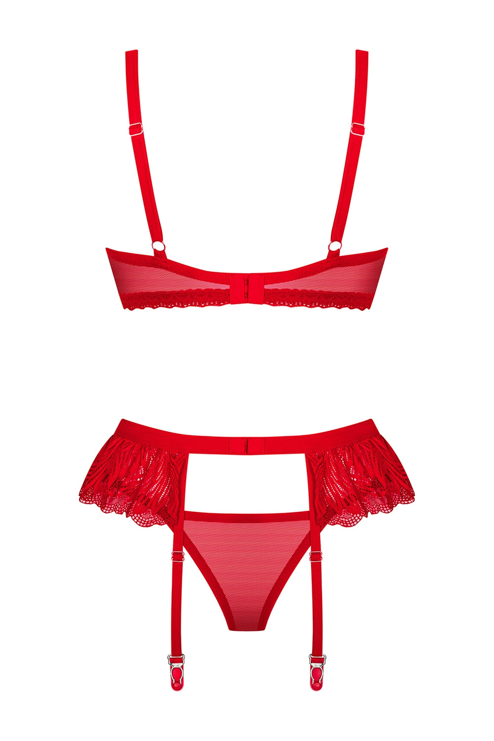 - komplet skład się z biustonosza, stringów oraz pasa do pończoch