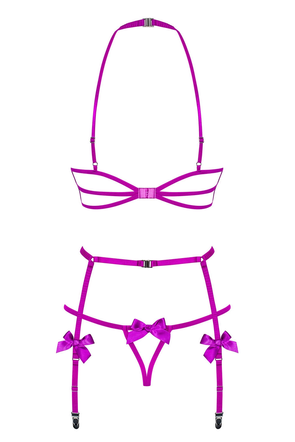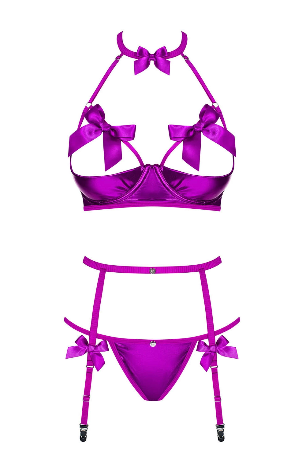 • Obsessive Delishya 3-pcs set Nocna komplet biustonosz + stringi + pas do pończoch, fioletowy