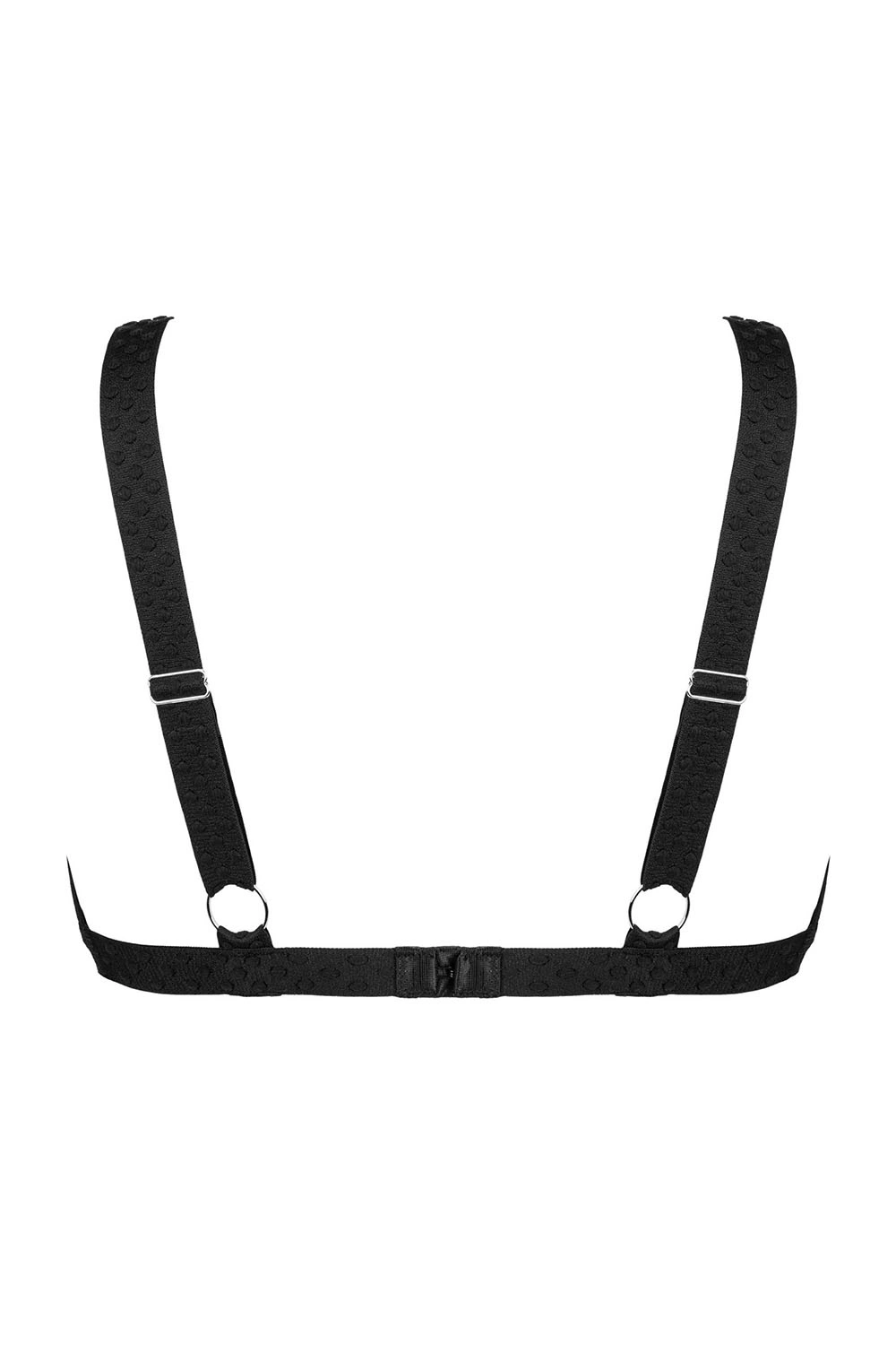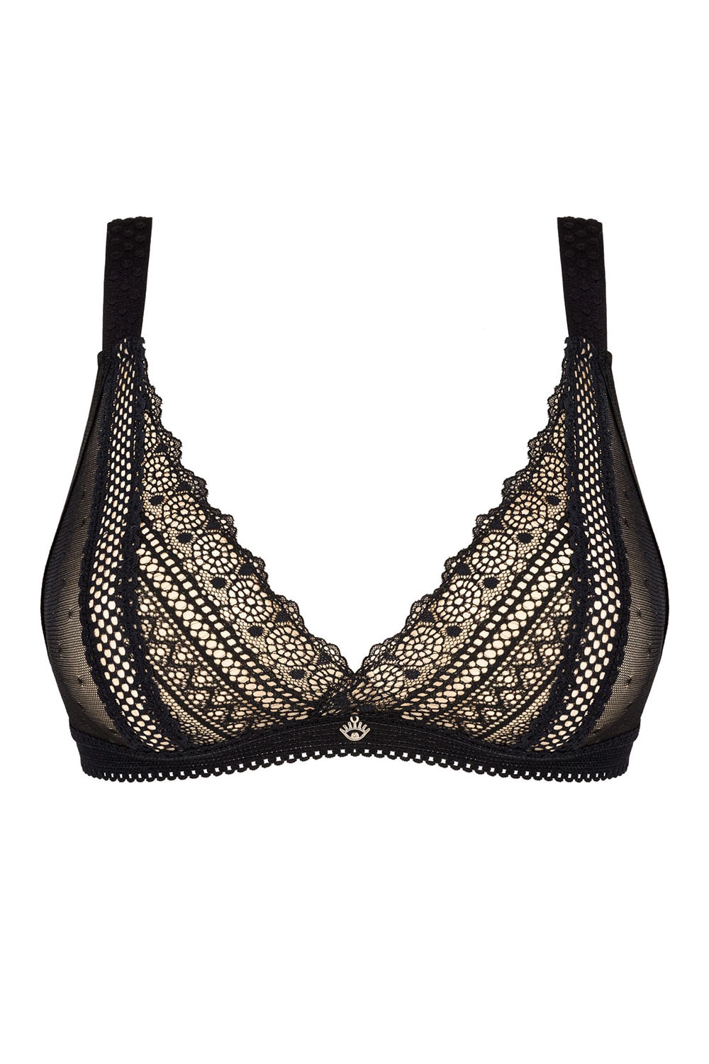 Ten czarny, niezwykle kobiecy biustonosz z kolekcji Estiqua będzie doskonałym towarzyszem w drodze do przyjemności podczas gorących nocy z ukochaną osobą. Trójkątne miseczki dbają o kuszący wygląd piersi i dekoltu, a unikalne zdobienia materiału dodają szyku i elegancji. Wyjątkowo delikatny, pełen seksapilu fason podkreśla piękno kobiecego ciała, a biżuteryjna zawieszka na przodzie to prawdziwa wisienka na torcie. Masz ochotę spróbować?