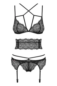 Obsessive Frivolla set Nocna komplet biustonosz + stringi + pas do pończoch, czarny