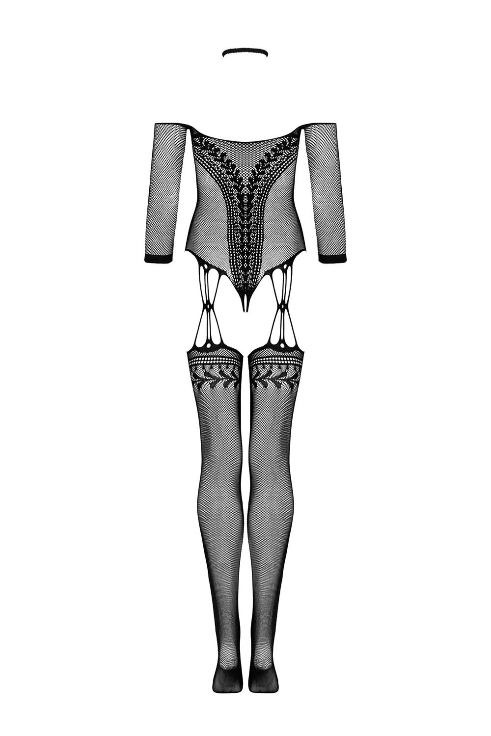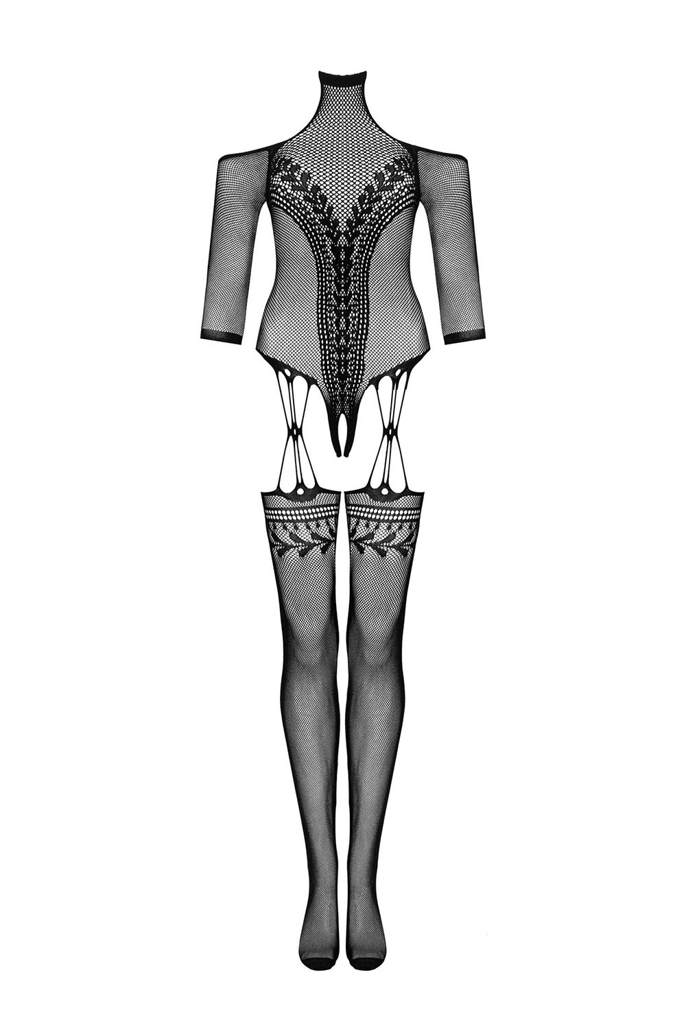 To wyjątkowe bodystocking przykuje (nie tylko) Twoją uwagę! Zakładane przez szyję, z rękawem długości ¾, zalotnie odkrywa ramiona i plecy. Paski trwale łączą body z otwartym krokiem z kabaretkami. Popatrz tylko na ten piękny roślinny motyw, który akcentuje linię brzucha i pleców, piersi i ud. Wzór idealny. Dasz radę się mu oprzeć?