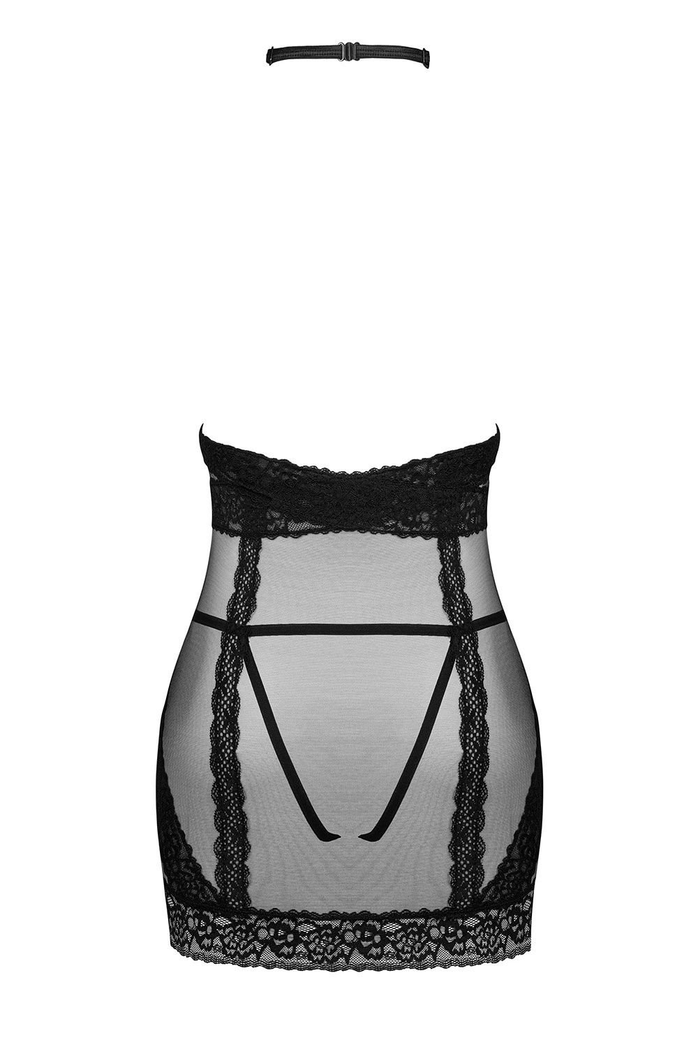 Czarna koszulka Lacrisia to bardzo odważna propozycja. Prześwitująca siateczka i koronkowe wykończenie pięknie podkreślają i otulają ciało, a niezwykle gorący krój kusi i intryguje. Odsłonięty biust i plecy gwarantują jeszcze więcej przyjemności, a zmysłowy choker doskonale zdobi szyję i dekolt.