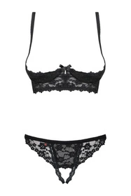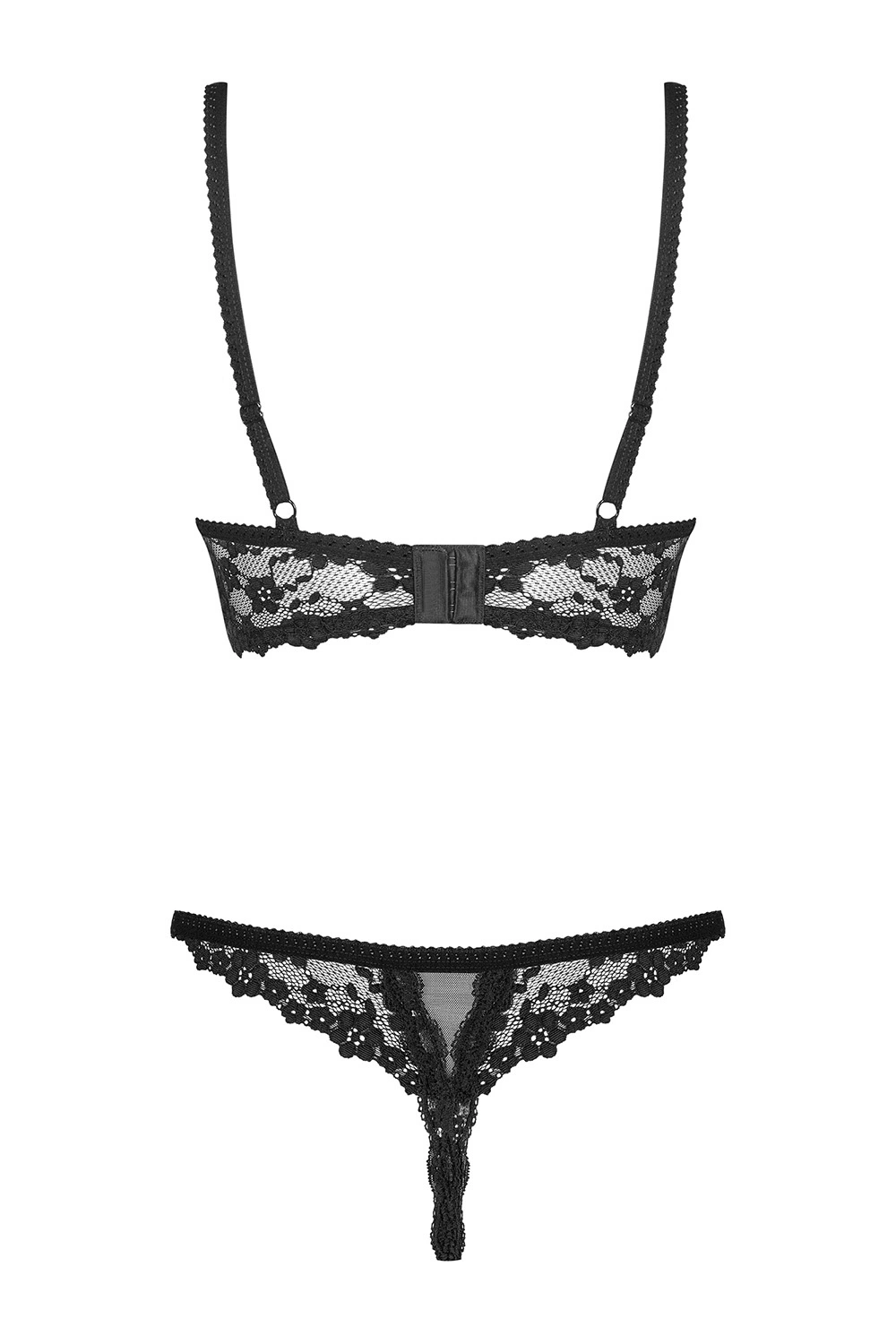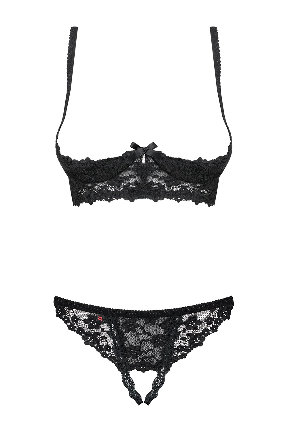 - zestaw zawiera: biustonosz z otwartymi miseczkami i stringi z otwartym krokiem