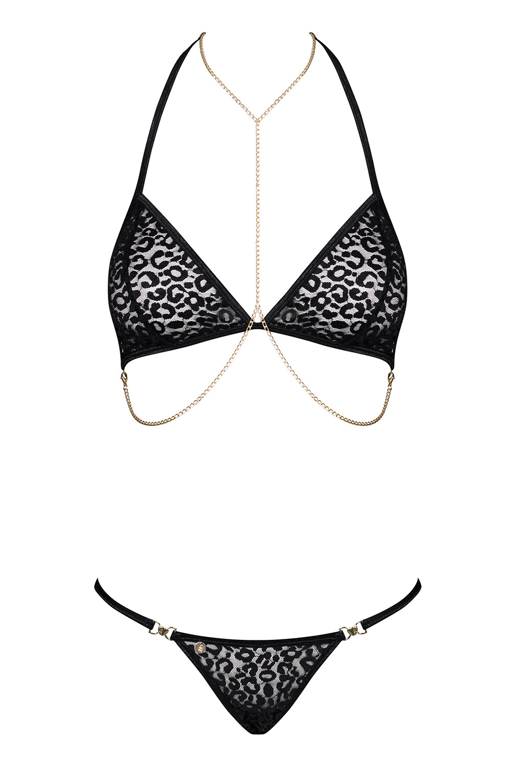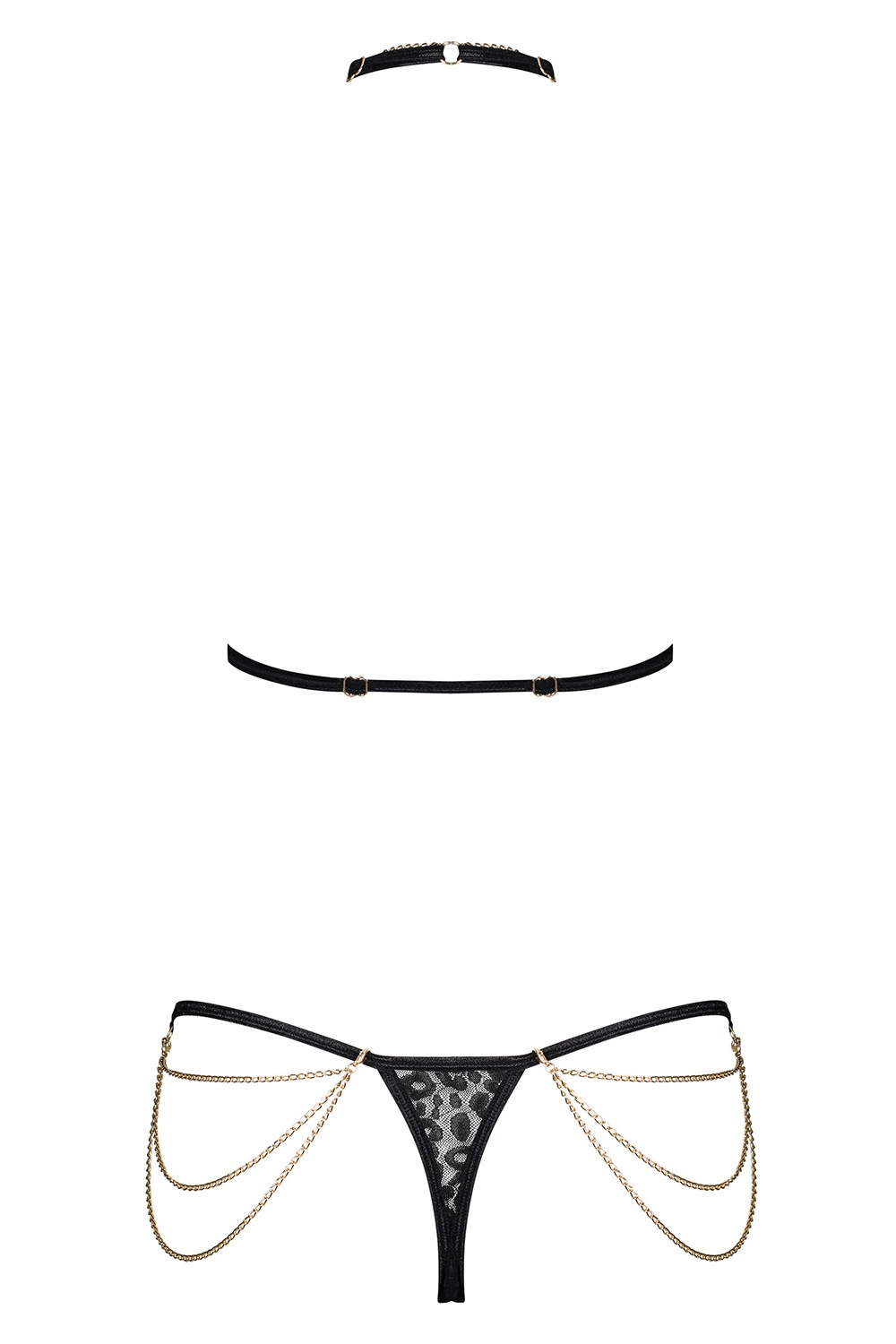 - intrygujący biustonosz zdobiony cętkami i połyskującym łańcuszkiem