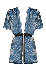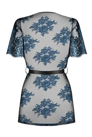 Marzy Ci się nowy szlafroczek pięknie komponujący się z Twoją ulubioną bielizną? Z czarującego połączenia zjawiskowej czerni i uroczego koloru indygo stworzyliśmy specjalnie dla Ciebie wyjątkowo cudny model ;) Elegancki koronka, klasyczny krój i prześwitujący materiał. Przedstawiamy Ci przecudowną Yassmyne!