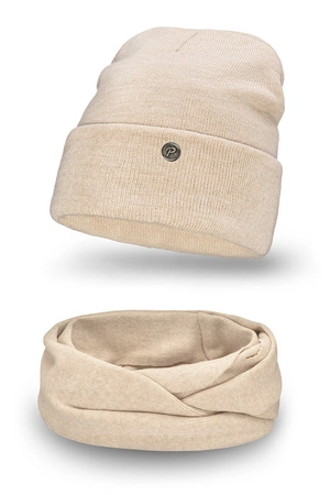 - Komplet czapka i komin z miękkiej, prążkowanej dzianiny