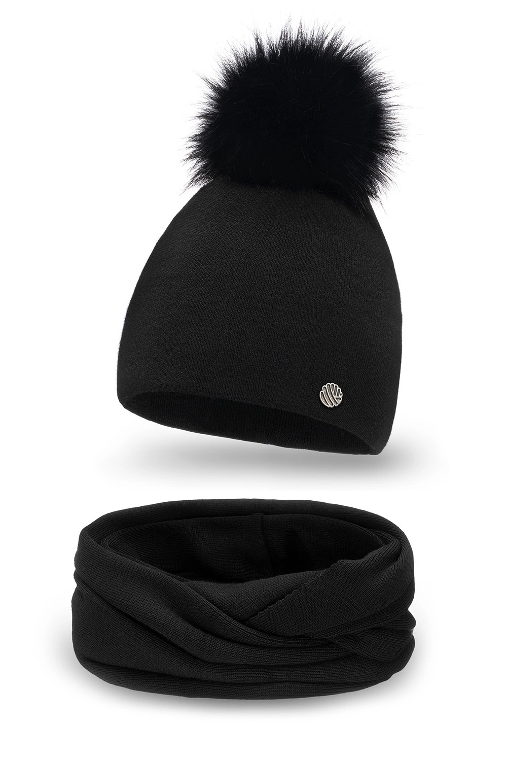 Pamami 15534+15604 komplet czapka z pomponem i komin czarny