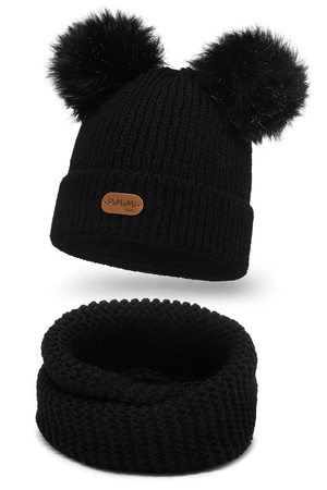 Pamami 17223+17251 komplet dziecięcy czapka z dwoma pomponami i komin czarny