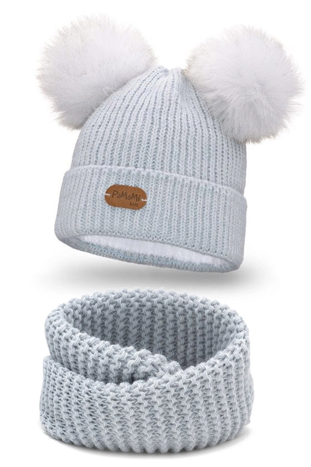 Pamami 17223+17251 komplet dziecięcy czapka z dwoma pomponami i komin lodowy