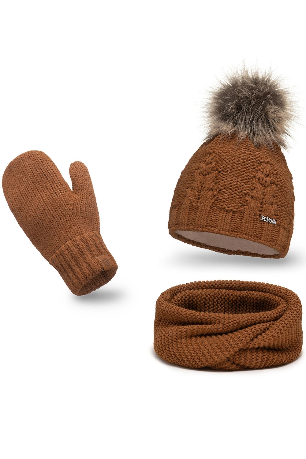 Pamami komplet czapka komin rękawiczki ocieplany karmel