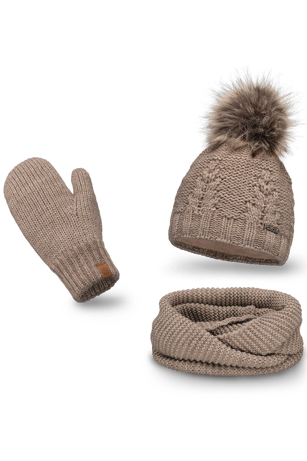 • Pamami komplet czapka komin rękawiczki ocieplany kawa z mlekiem