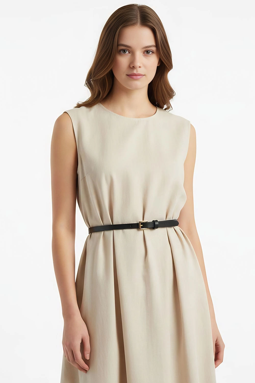 Klasyczny cienki pasek ze skóry naturalnej ze złotą klamerką.