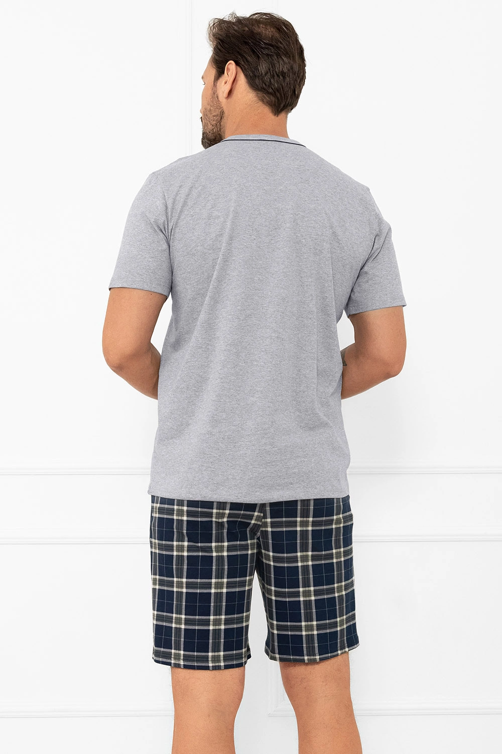 Piżama męska Andreas to dwuczęściowy komplet do spania, który łączy swobodę i prostotę. Koszulka z krótkim rękawem ma klasyczny, okrągły dekolt i wygodny krój, który nie krępuje ruchów. Krótkie spodenki zapewniają lekkość w cieplejsze noce, a praktyczne kieszenie przydają się na drobiazgi. Elastyczny pas dopasowuje się do sylwetki i pracuje z ciałem podczas odpoczynku. Gładkie wykończenia i przyjemna w dotyku dzianina podnoszą komfort noszenia przez cały wieczór i noc. Komplet sprawdzi się zarówno w domu, jak i na wyjeździe, łatwo go zestawić z szlafrokiem lub kapciami. To wybór dla osób ceniących proste formy i funkcjonalne rozwiązania bez zbędnych dodatków. Starannie dobrane detale oraz przewiewność materiału sprzyjają spokojnemu snu i swobodnemu relaksowi.