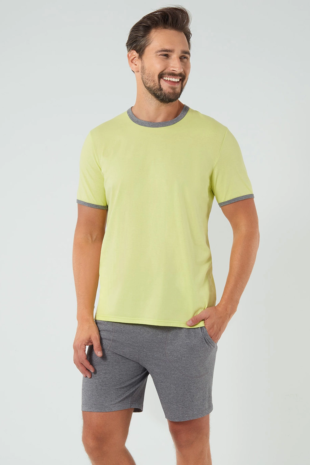 Piżama Italian Fashion Nikodem kr.r. kr.sp. limonka/śr.melanż