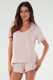 Piżama Italian Fashion Puntini kr.r. kr.sp. druk/pudrowy róż