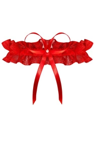 Wąska podwiązka Odessa Plus Size wykonana jest z czerwonego tiulu i ozdobiona kokardką z perełką.