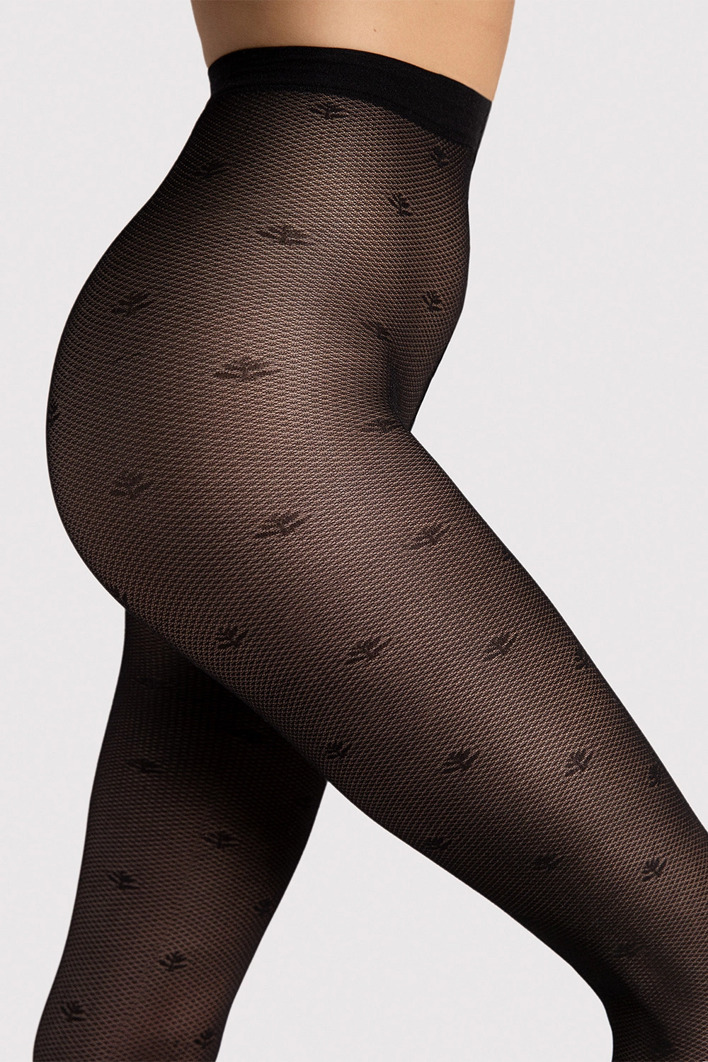 Wzorzyste rajstopy damskie o siateczkowej strukturze.