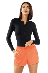 Krótkie spodenki w pomarańczowym kolorze. Uniwersalny fason sprawdzi się w każdej sportowej stylizacji.