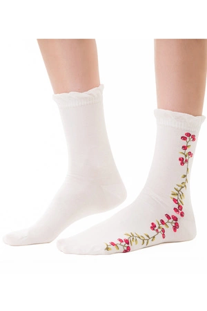 Miękkie, elastyczne skarpetki w roślinne wzory. Wykonane są z wysokiej jakości bawełny. Góra wykończona falbanką. Doskonałe na każdy dzień.