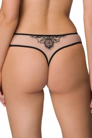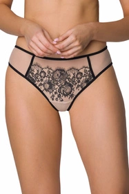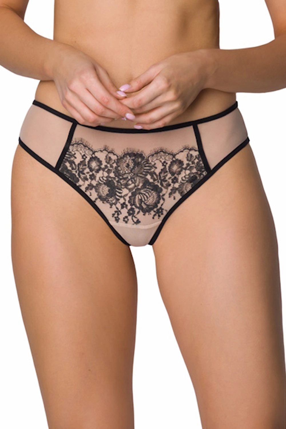 - wykonane z elastycznego beżowego tiulu i kontrastowej czarnej koronki