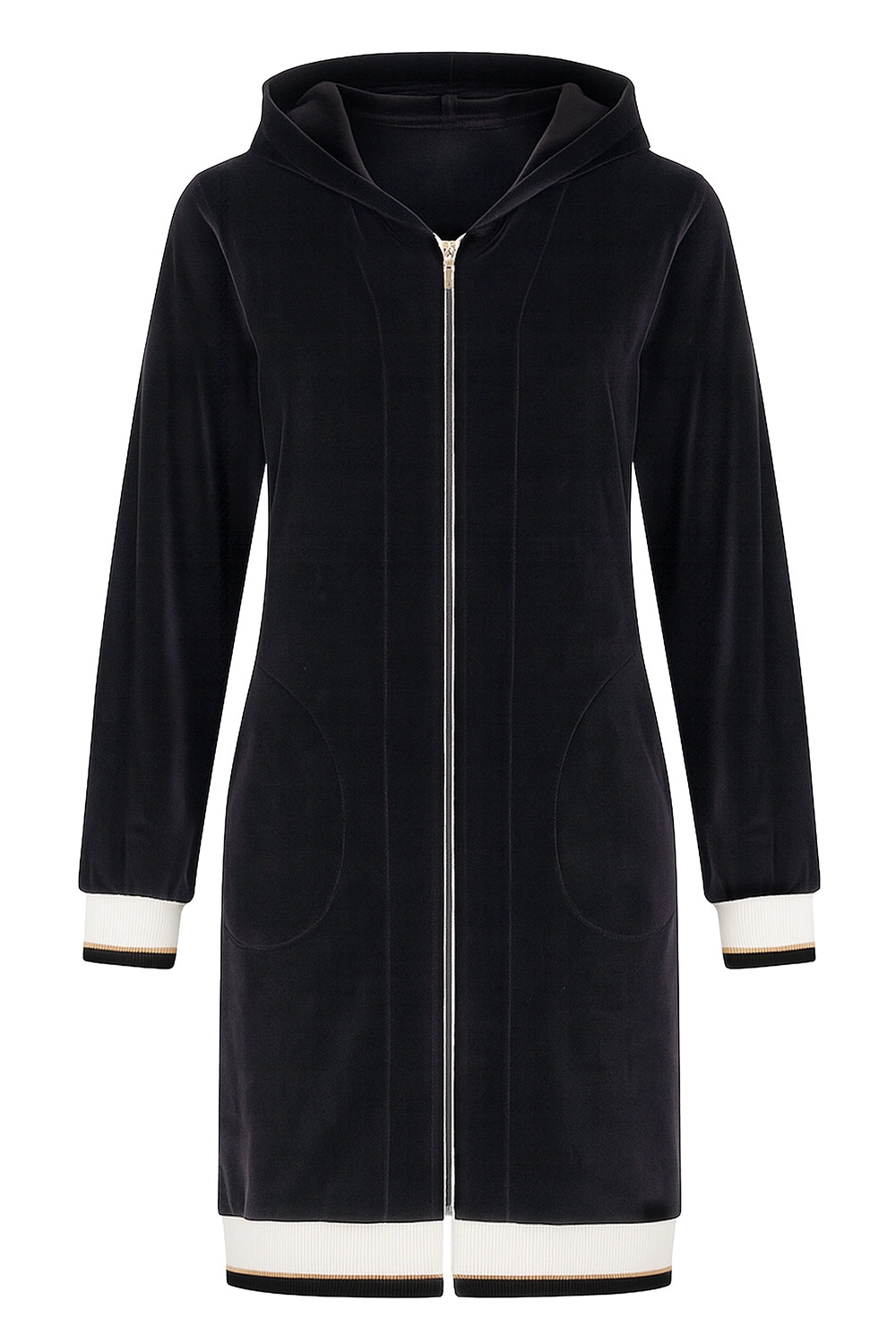 Długość szlafroka mierzona na płasko to ok. 93 cm, długość rękawa ok. 60 cm, wymiary mogą się od siebie różnić w zależności od rozmiaru.
