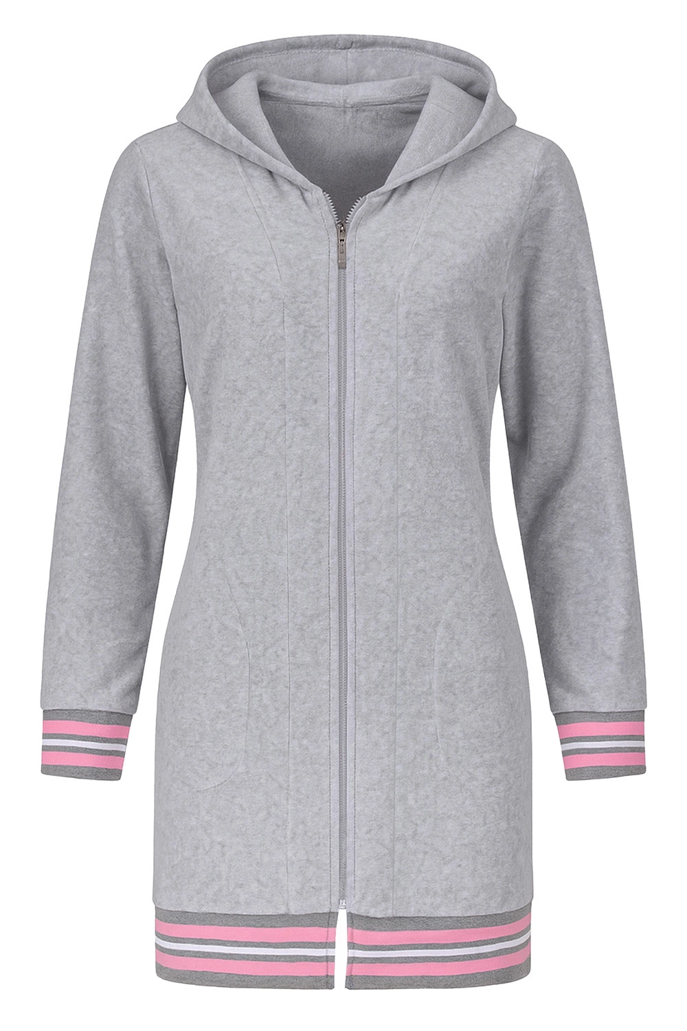 Długość szlafroka mierzona na płasko to ok. 93 cm, długość rękawa ok. 60 cm, wymiary mogą się od siebie różnić w zależności od rozmiaru.
