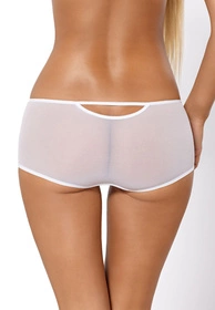 Niezwykle seksowne bokserki łączą w sobie piękno haftu z wygodą miękkiej, delikatnej i elastycznej siateczki. Doskonałym dopełnieniem eleganckiego przodu jest zmysłowe wycięcie na pośladkach, które w subtelny sposób pobudza wyobraźnię.