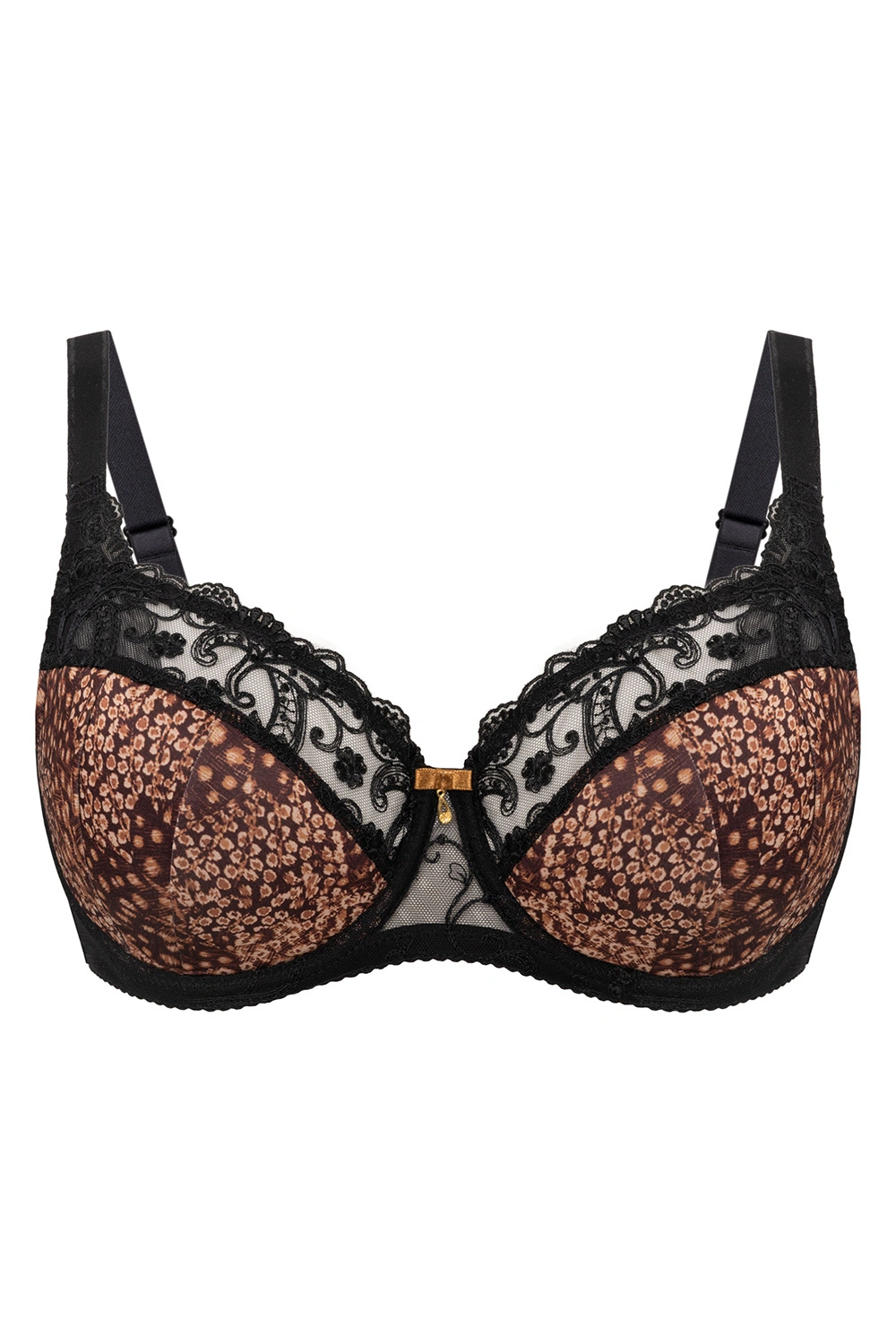Vena VB-473 to półusztywniany biustonosz, który łączy stabilne podtrzymanie z lekkim, kobiecym wykończeniem. Dolna część miseczki jest usztywniana, co pomaga unieść biust i nadać mu naturalny kształt, a górna część z delikatnej koronki miękko dopasowuje się do sylwetki. Przejrzysty, koronkowy panel w górze miseczek dodaje lekkości, jednocześnie zachowując wygodę użytkowania przez cały dzień. Model ma fiszbiny, które wspierają konstrukcję, oraz boczne fiszbiny pionowe stabilizujące obwód. Ramiączka są regulowane, nieodpinane, z metalowymi haczykami, co zwiększa trwałość i pewność noszenia. Zapięcie na haftki z tyłu pozwala dopasować obwód do potrzeb. Gładki dół miseczek dobrze układa się pod ubraniem, a elastyczne wykończenia pracują z ciałem przy codziennej aktywności. To propozycja na co dzień oraz pod ubrania, w których liczy się kształt i dyskretne wykończenie.