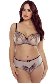 • ramiączka, zapięcie na haftki oraz wykończenie górnej i dolnej części biustonosza w czarnym kolorze