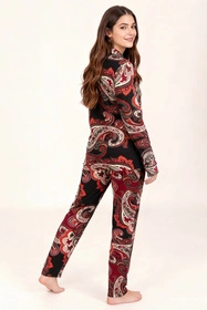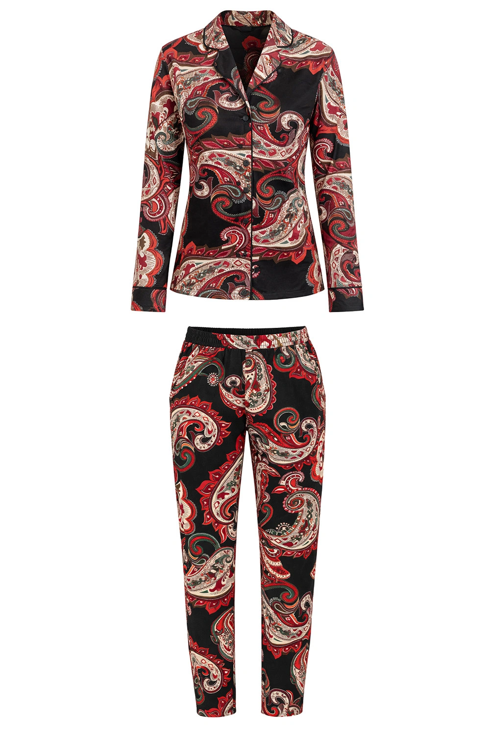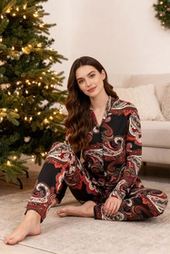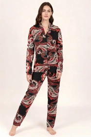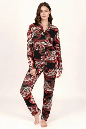 Vivisence 2063 piżama koszulowa z dekoracyjnym wzorem czarno-czerwony
